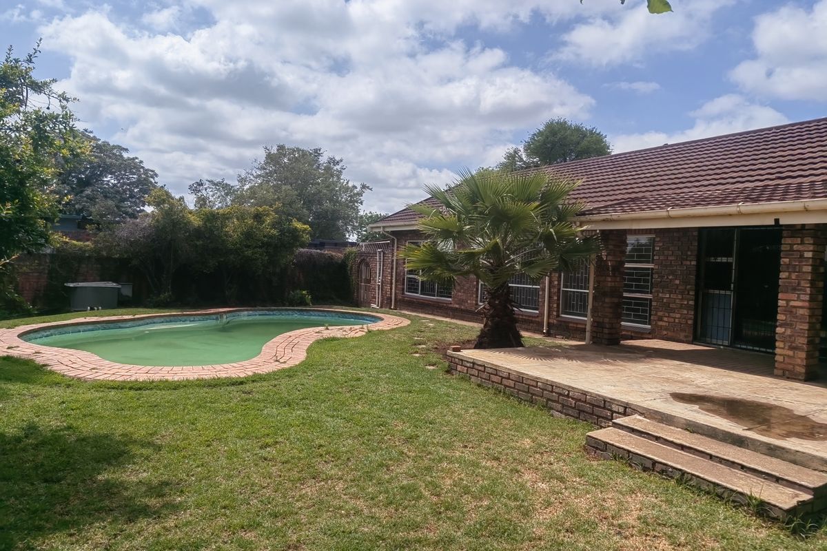 Family-focused entertaining in a quiet neighborhood with large pool and braai, spacious garden and outside storage; five bedrooms, study, two bathrooms and four covered parking.
