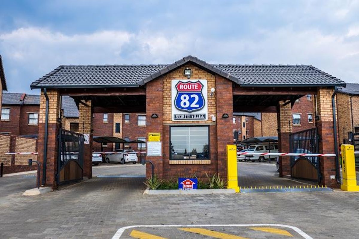 Enjoy secure, community living in Route 82, Kibler Park — 20 minutes south of Johannesburg — featuring open-plan lounge/kitchen, play areas and mini soccer field. Two beds, one bath.