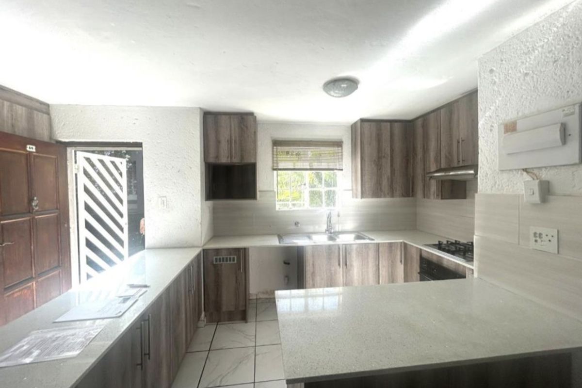 Nestled among beautiful gardens, this charming townhouse offers a peaceful setting that is perfect for a young family. The home welcomes you into a spacious open-plan kitchen, lounge, and dining area that creates a warm and inviting living space. Interleading doors open onto a small private patio, ideal for relaxing outdoors or enjoying quiet moments surrounded by greenery. The home is tiled throughout, making it both practical and easy to maintain.