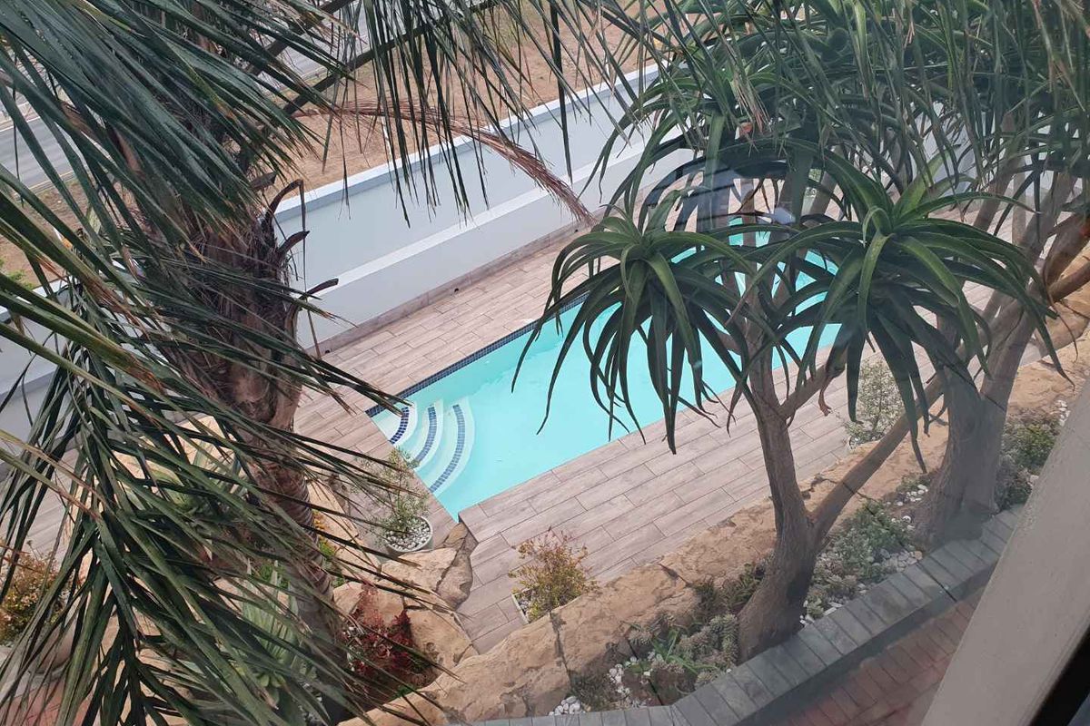 The property's landscape is a vision of beauty, adorned with palm trees, aloes, and unique rock features that enhance the natural surroundings, creating a serene oasis right at your doorstep.