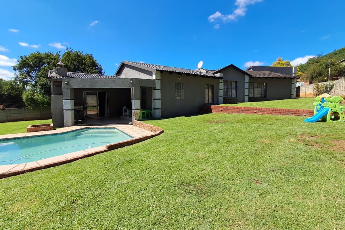 Relaxation awaits in the sparkling swimming pool, equipped with a heating pump for year-round enjoyment. Your peace of mind is assured with top-notch security measures, including 8 CCTV cameras, burglar bars, an alarm system, automated access gates, and an electric fence.