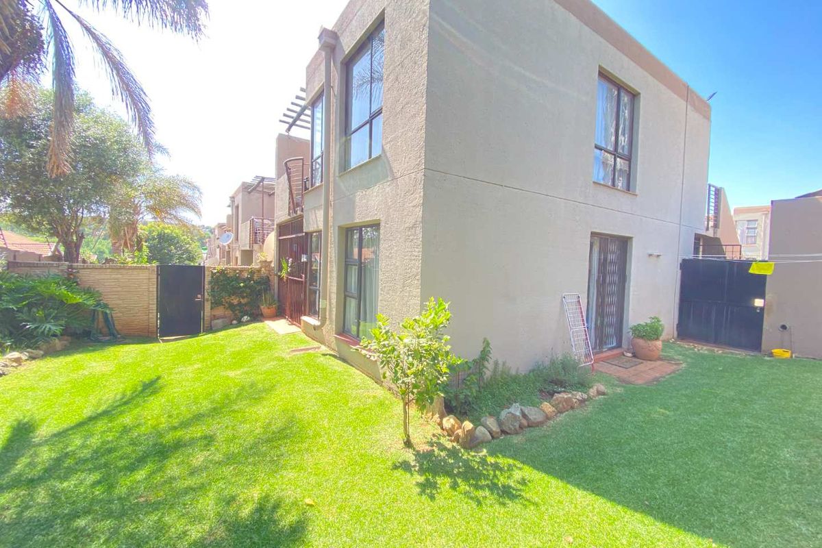 Low-maintenance family living with seamless open-plan entertaining and private corner garden in sought-after Glenvista, Johannesburg South — covered patio, two bedrooms, one bathroom, one covered and one open parking.