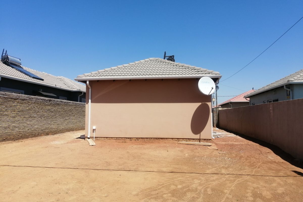 Neat and Tidy well maintained two bedroom(2) house with fitted wardrobes. Open plan kitchen and lounge area, fully tiled floors with burglars doors on both doors, Property is situated at about 3 km away from Trade Route Mall. Good Schools around the area both Public and Private, Easy access to Golden Highway and N1 Freeway from this property which is ideal for an upstarting family.