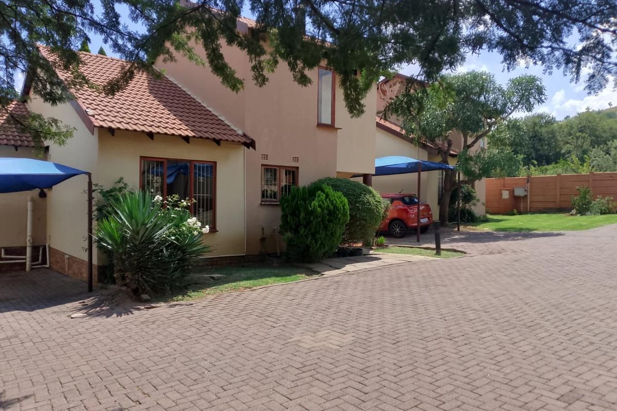 Peaceful suburban living in Johannesburg South, walking distance to Mulbarton Primary and minutes from Mall of the South — standalone townhouse with private shaded garden patio, three bedrooms, two bathrooms.