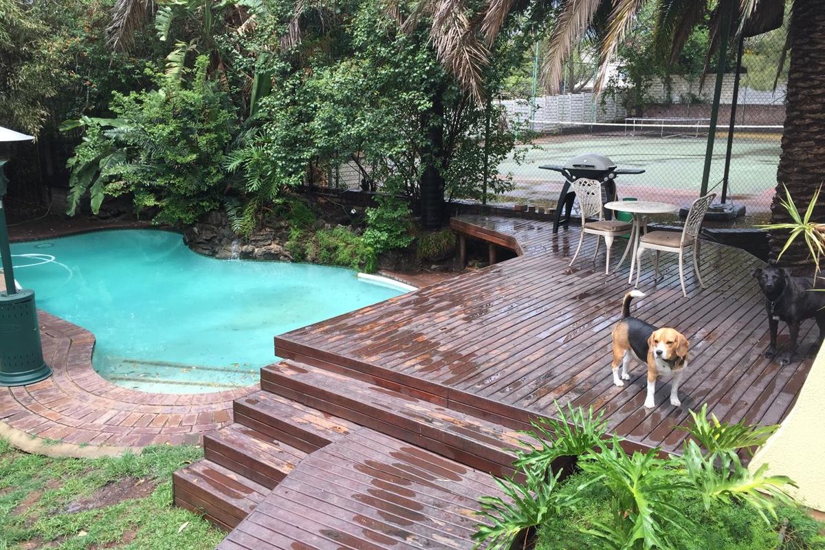 This generous 3-bedroom, 2-bathroom home is set on a large 2024 m2 stand and offers plenty of space for comfortable family living. It features a lounge, separate dining room, guest toilet, and a modern granite-topped kitchen with a gas stove and breakfast nook. The main bedroom includes an en-suite bathroom. Entertainment is a breeze with a built-in pub, pool, braai area, and expansive garden. Additional features include a granny flat, two cottages, staff accommodation, and four garages with extra parking space. Security is well-covered with beams, alarm system, gate alarm, and electric fencing. The property also includes a borehole and irrigation system for added convenience.