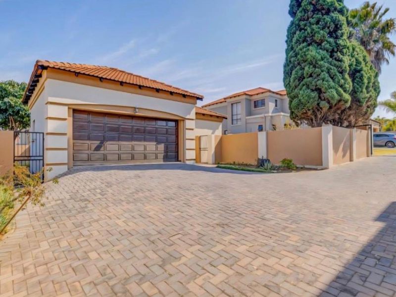 Entertain effortlessly in Mulbarton’s leafy suburb with a private outdoor paradise — pool, lapa, jacuzzi, bar and large garden with jungle gym. Five beds, four baths, double garage.