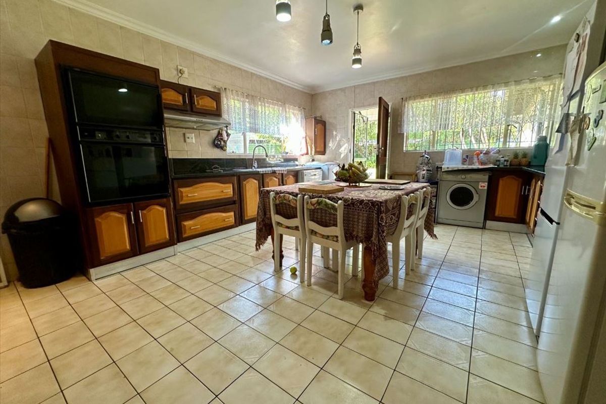 The modern kitchen features a pantry and scullery, providing ample storage and convenience. The home includes four bedrooms with built-in cupboards (BIC), two bathrooms, and a luxurious en-suite in the main bedroom. Outdoor living is enhanced by a sparkling pool, ideal for family fun and summer days. A granny flat offers versatile accommodation for guests or extended family.