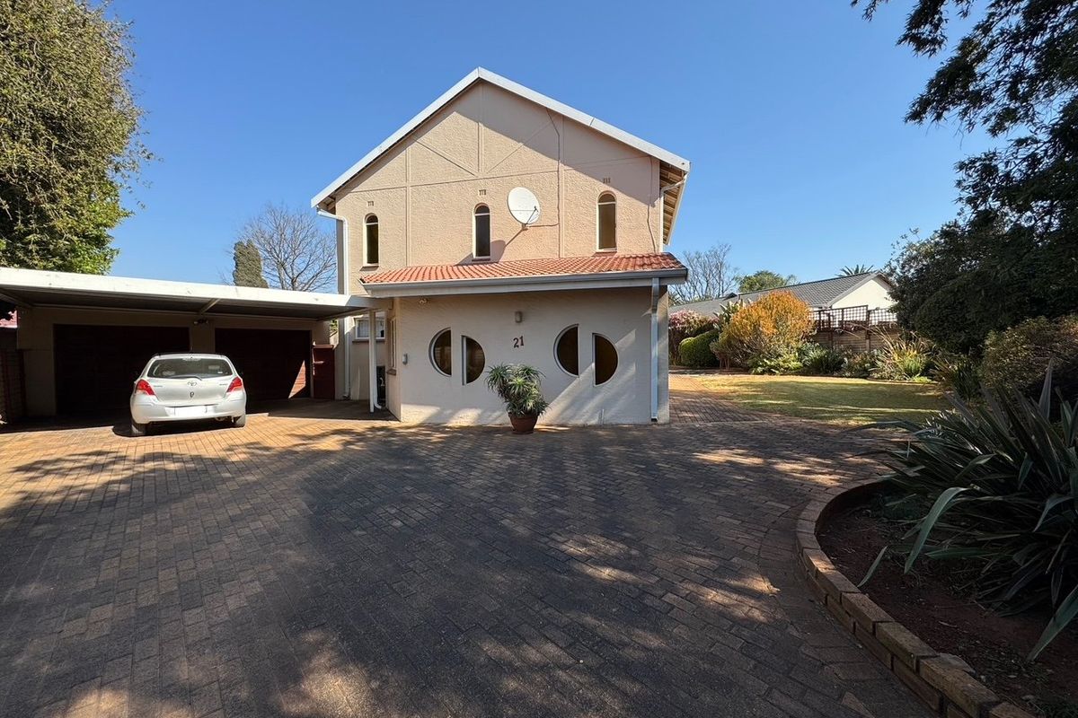 The modern kitchen is complemented by a scullery and separate laundry for added convenience. Outdoor living is enhanced by a sparkling pool, ideal for entertaining or relaxing. Staff quarters provide extra flexibility, while the three-car carport and double garage ensure secure parking for multiple vehicles.