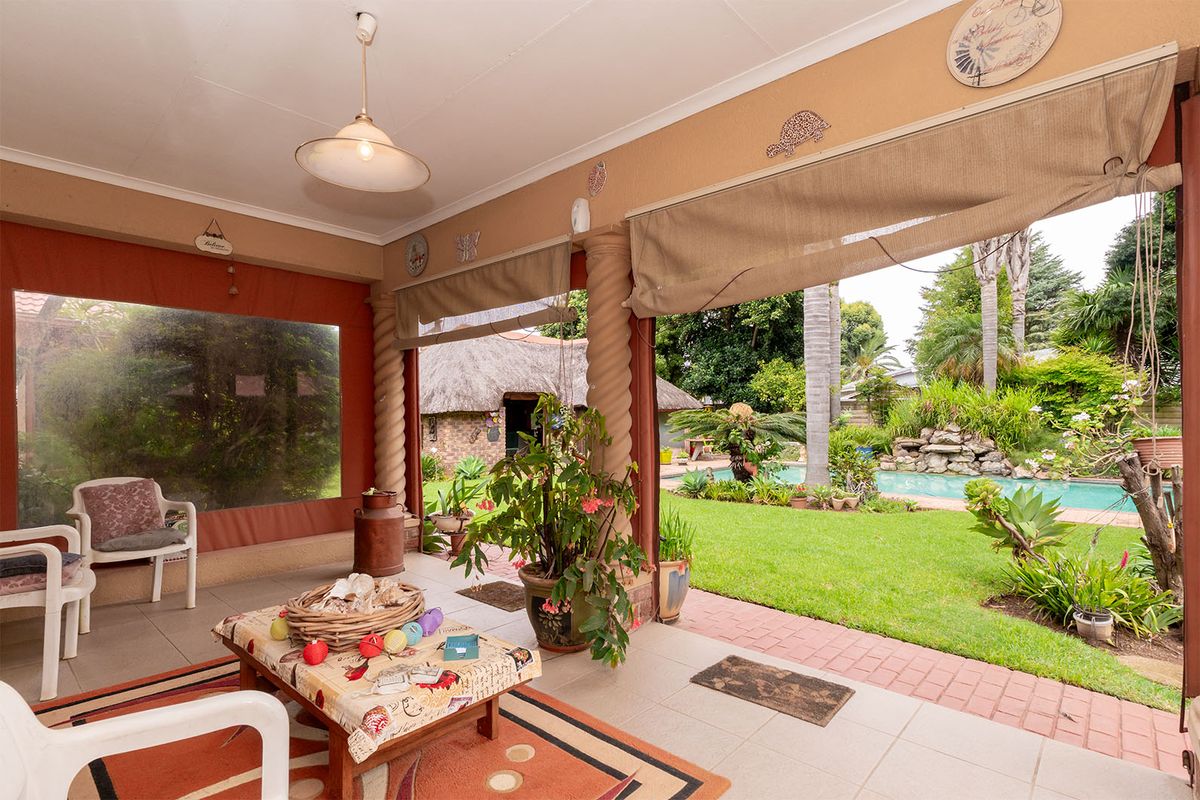 Family-focused home near OR Tambo Airport and shops, with a massive 1,480 m² yard for entertaining or car projects, solar panels and backup water, four bedrooms, three bathrooms, two garages.