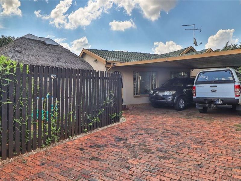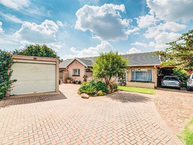 Entertainer's family oasis in sought-after Bonaero Park, minutes from OR Tambo, top schools and shopping — covered patio, a charming log-cabin studio and 4 beds, 3 baths, single garage.