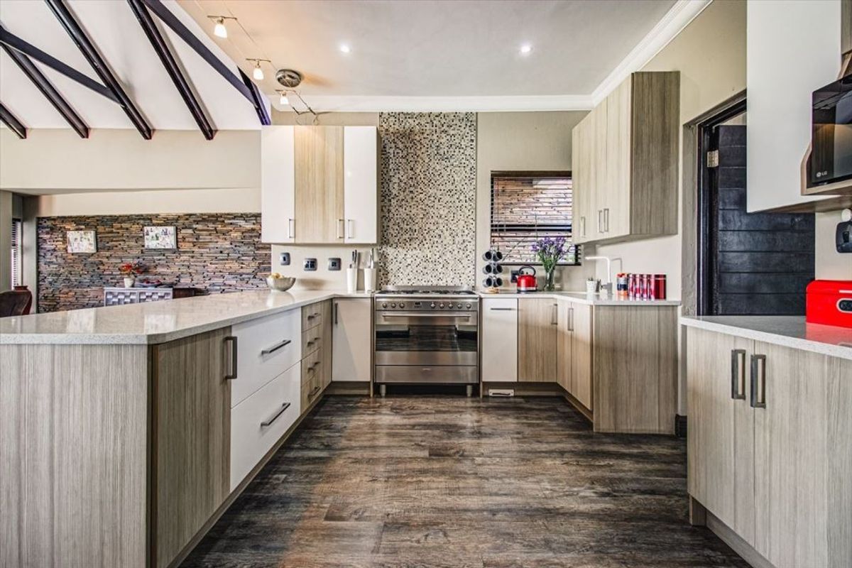 A formal dining room and private study add to the home’s functionality. Boasting five spacious bedrooms with built-in cupboards, three feature en-suite bathrooms, complemented by an additional bathroom and three guest loos. The property also includes staff quarters and two self-contained granny flats, ideal for extended family or rental income.