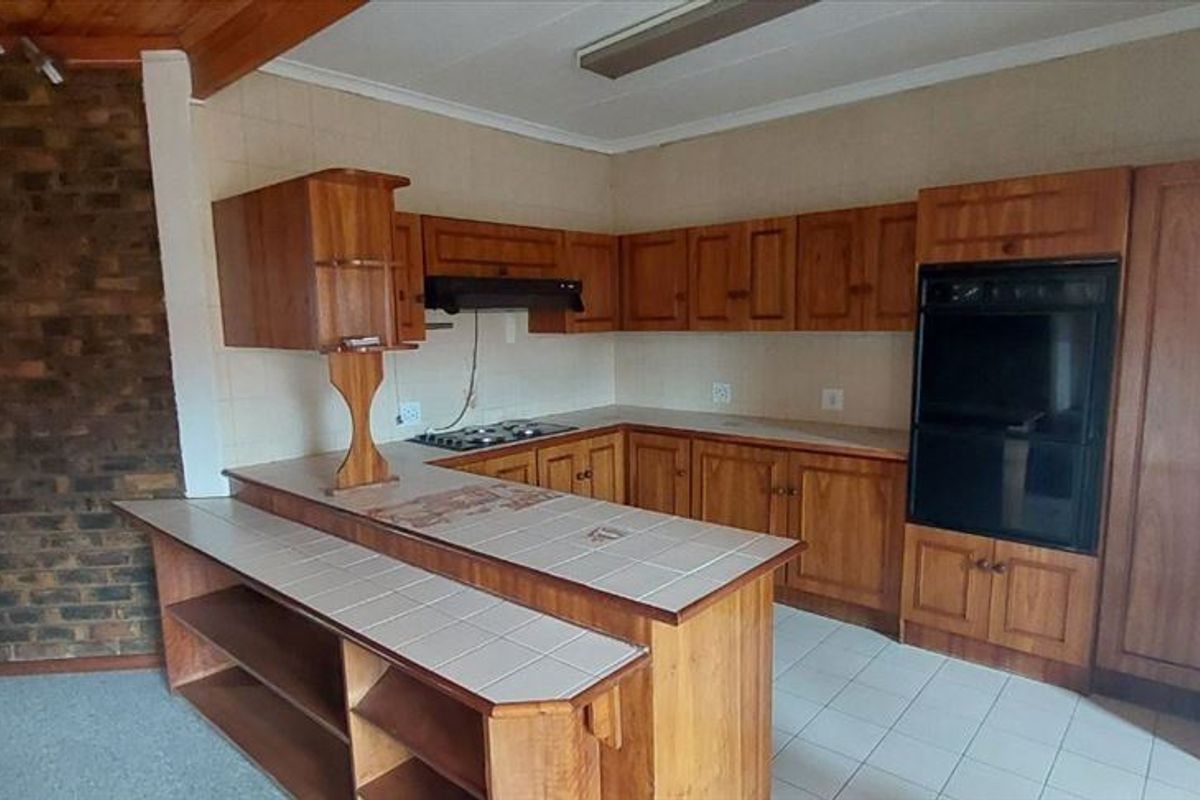 The kitchen is well-equipped and complemented by a practical scullery that provides additional space for cleaning and storage. The home offers three well-sized bedrooms with built-in cupboards and two bathrooms, including a private en-suite for the main bedroom.