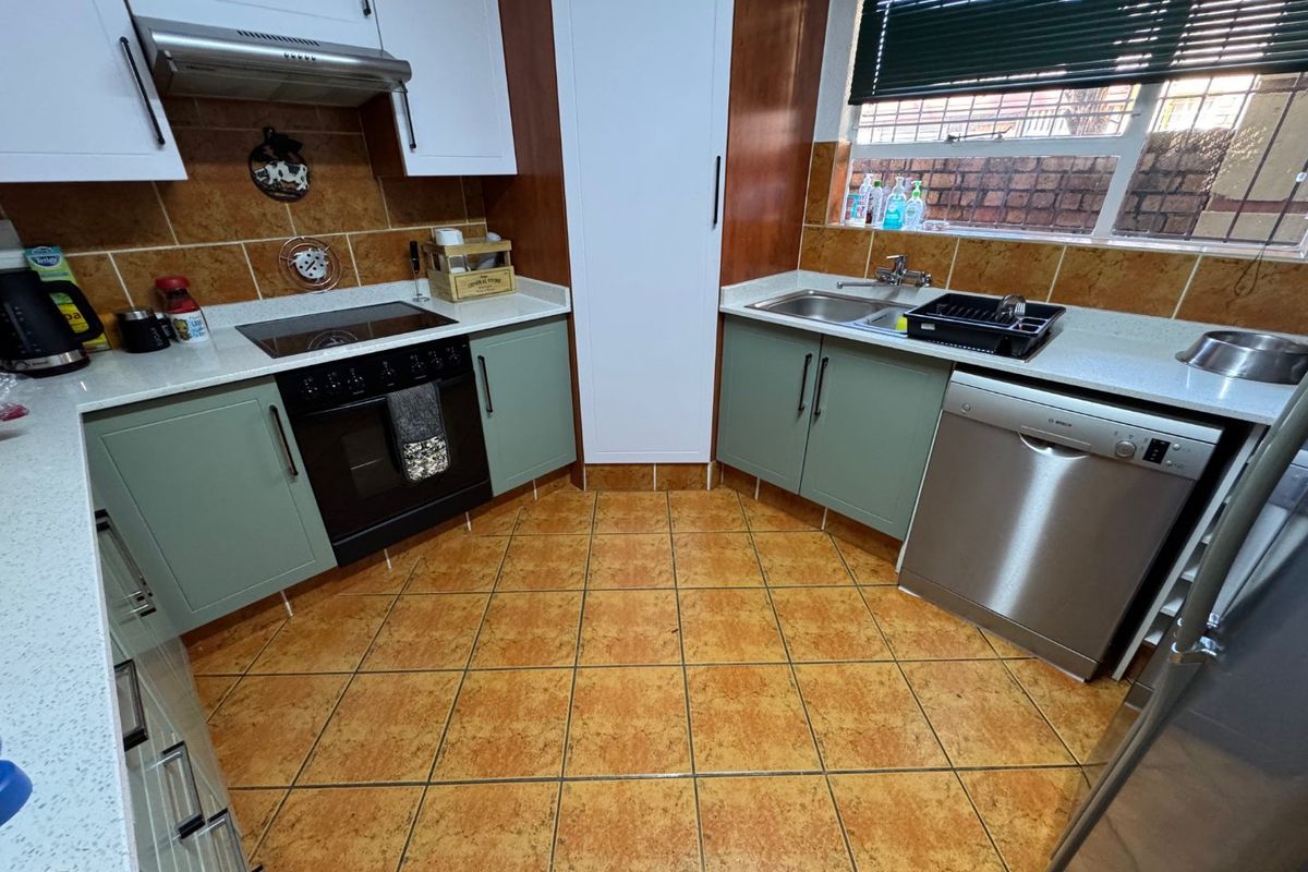 The full bathroom includes a shower, toilet, vanity unit, and is half-tiled for easy upkeep. The stylish kitchen boasts granite countertops, a tiled floor, a gas stove with four plates, under-counter oven, and extractor fan. A pantry with cupboard space adds to the home’s practical appeal.