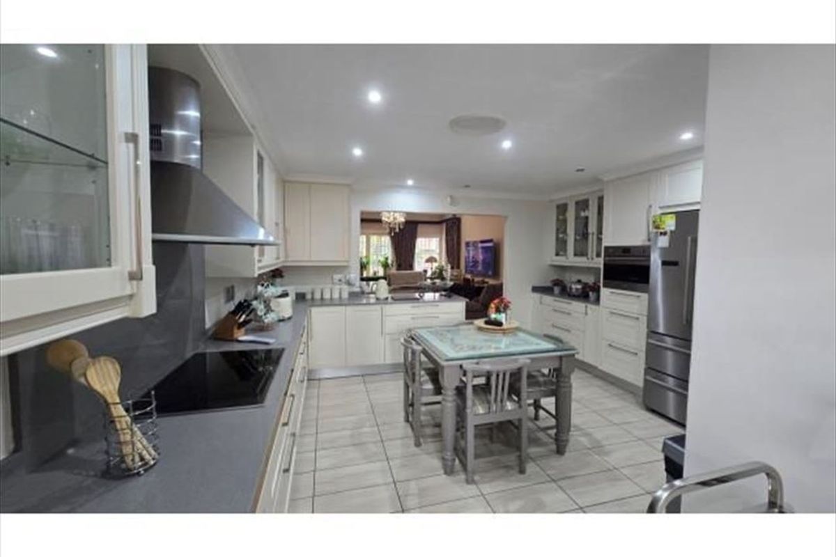 This stylish and spacious home features 4 comfortable bedrooms, including a main en-suite, 2 modern bathrooms, and 4 built-in cupboards (BIC). The well-appointed kitchen is supported by a separate scullery and walk-in pantry, offering practical convenience.