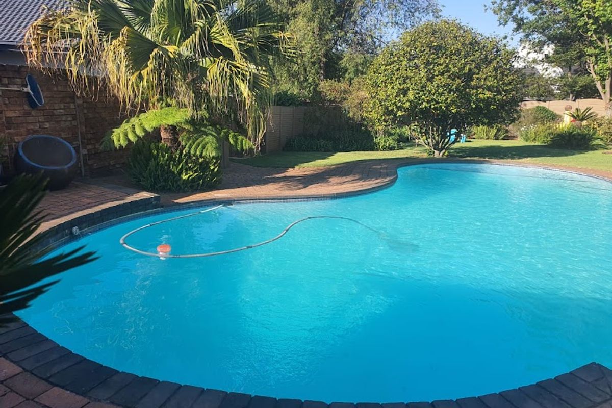 Secure, off-grid family living in Glen Marais near top schools and major routes — enclosed entertainer's patio with built-in braai and solar-heated pool. Four bedrooms, two bathrooms.