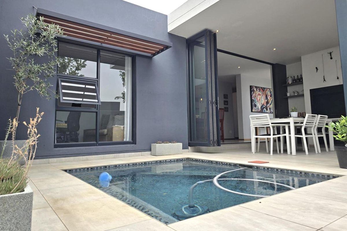 Resort-style living in prestigious Swallow Hills Estate with 24-hour security, parks and clubhouse. Entertain on covered patio overlooking heated pool with built-in braai. Four bedrooms, two bathrooms.