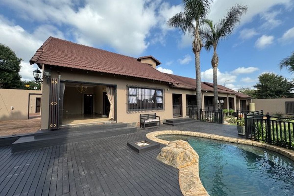 The open-plan design includes a generous dining room and a well-equipped pantry and scullery. Each of the two en-suite bathrooms ensures privacy and convenience, complemented by two additional bathrooms. With seven built-in cupboards, ample storage space is never a concern. The home also features a guest loo and a staff quarters for added functionality.