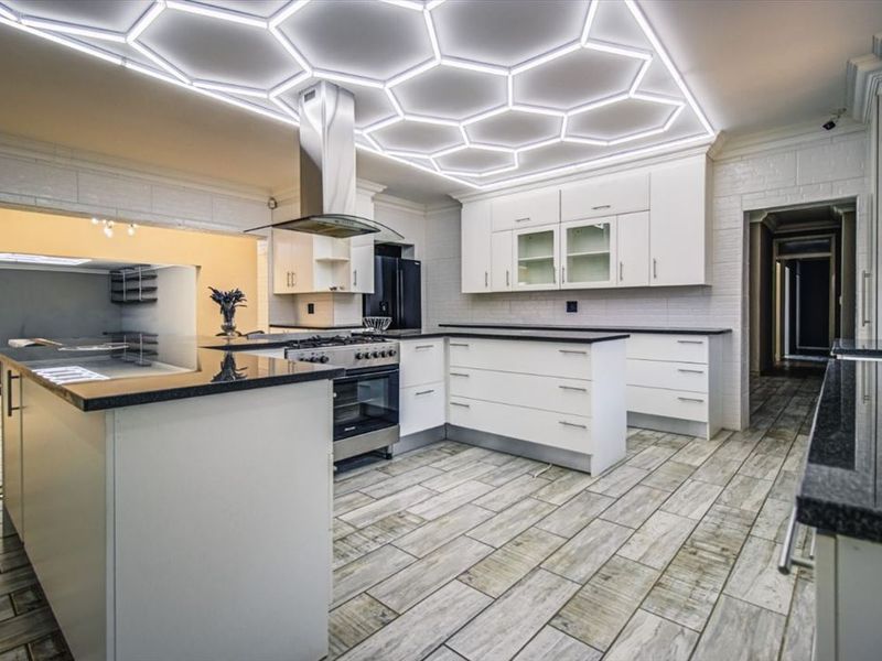 Entertainer's retreat in secure Glen Marais estate with open-plan living, modern granite kitchen and bar, skylights and fireplace; four bedrooms, two bathrooms and double garage.