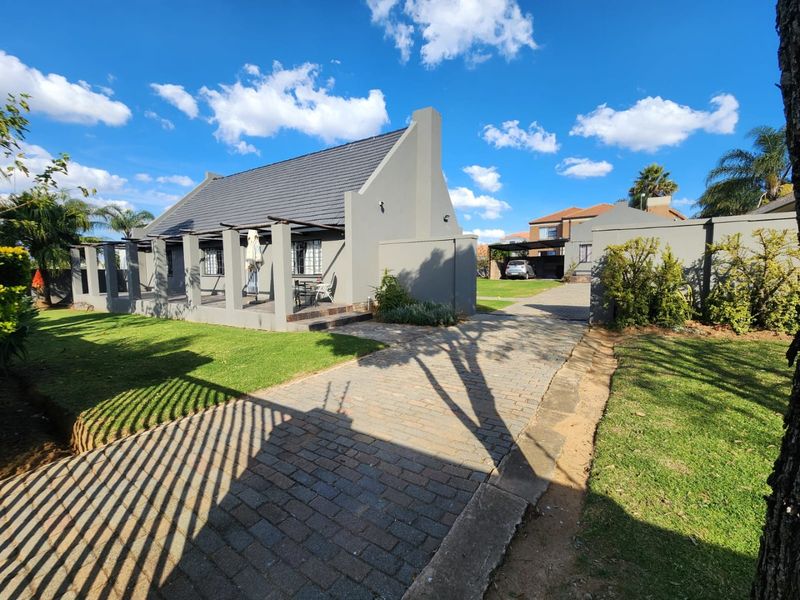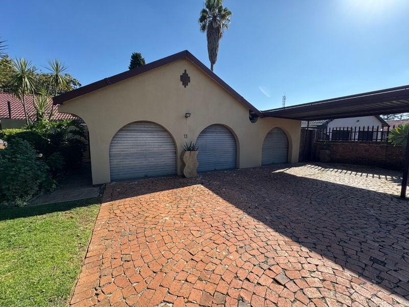 Entertainer's lock-up-and-go living in the heart of Kempton Park, secure complex — seamless indoor-outdoor flow with enclosed patio and built-in braai opening to landscaped garden; three bedrooms, double garage.