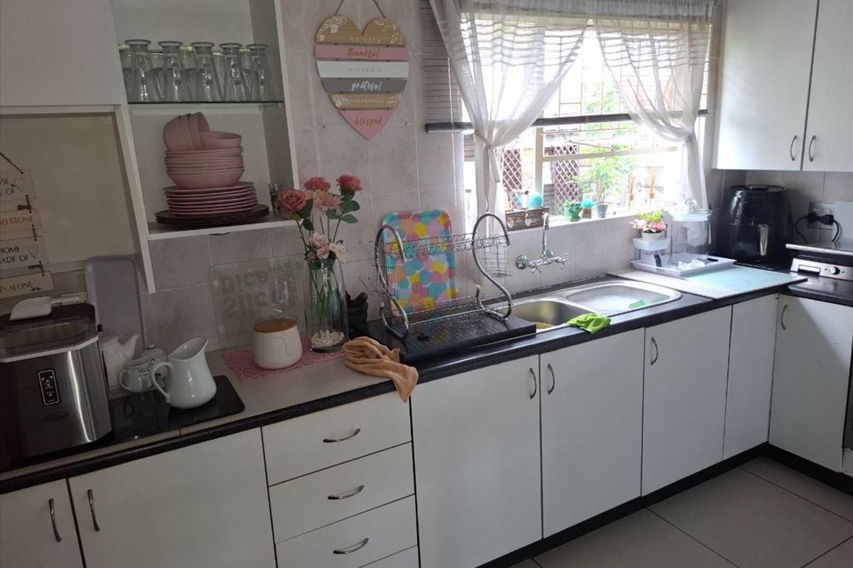 The home features four Bedrooms, two of which have En-Suites, ensuring privacy and luxury. There are also two additional Bathrooms and plenty of Built-In Cupboards (BIC) for storage. For convenience, there’s a Guest Loo. The property includes a Pool for relaxation and enjoyment, as well as a Double Garage for secure parking. This home is ideal for family living with ample space and modern comforts.