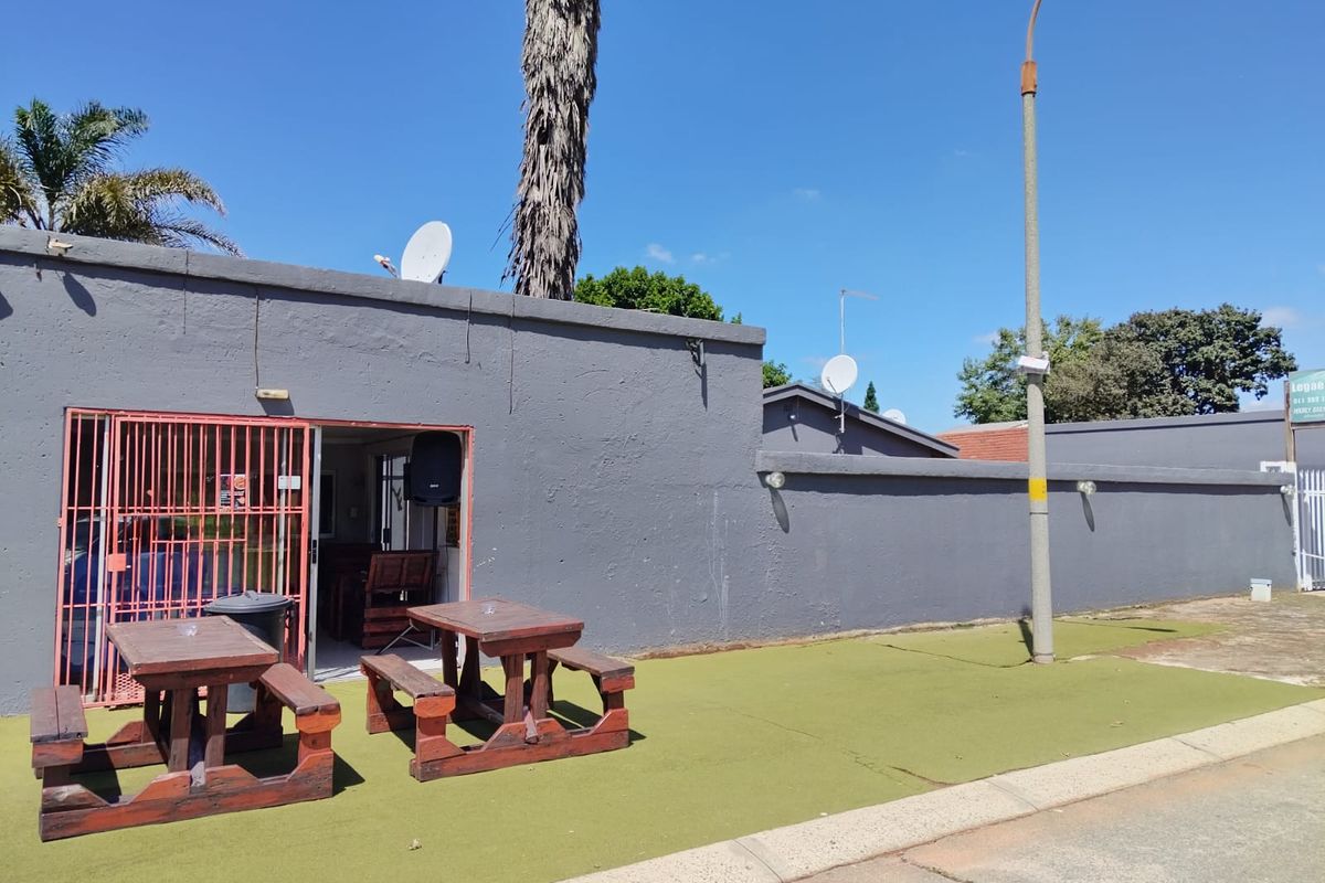 Ideal for investors or shared living, this fully fenced property near local amenities includes a transferable liquor-licensed takeaway/restaurant, lapa, communal kitchen, nine rooms (five with showers) and six covered parking.