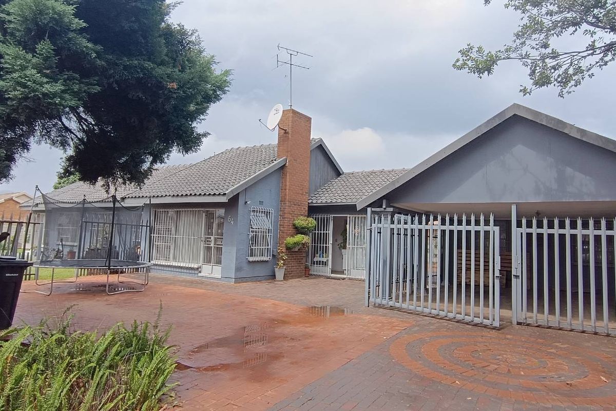 Relaxed family living in Nimrod Park, Kempton Park, with sunny open-plan living and a separate flatlet for rental income; three bedrooms, two bathrooms, two covered carports.