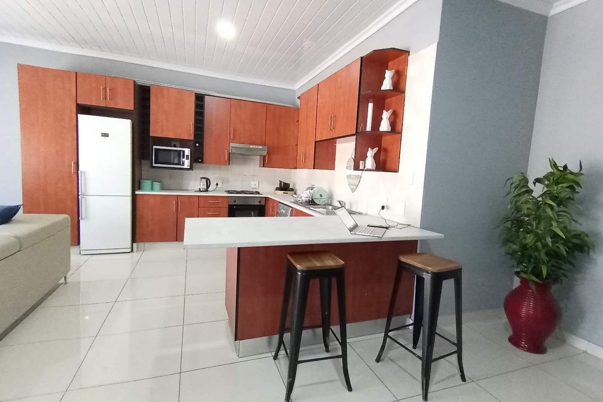 Enjoy relaxed, secure living near Greenstone and Norkem malls with quick OR Tambo/Gautrain access. Newly renovated with a modern chef's kitchen, communal garden and pool; two beds, two baths, garage.