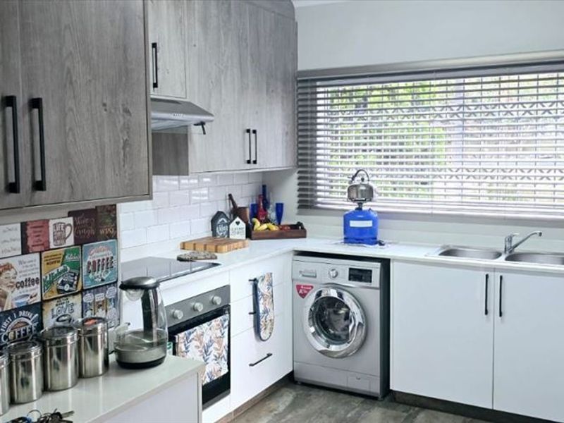Easy, stylish family living within walking distance of Gautrain and close to OR Tambo and Festival Mall. Open-plan interiors, modern kitchen with touch stove; three bedrooms, two baths, tandem garage.