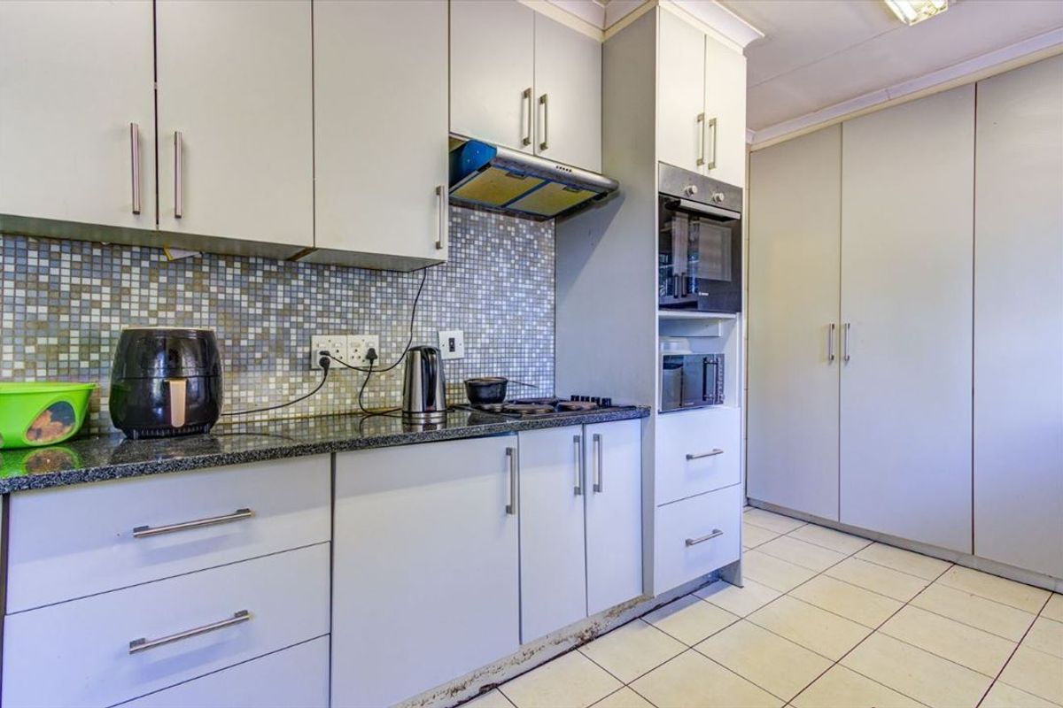 A private study provides the perfect work-from-home space. The kitchen is complemented by a separate scullery, adding extra convenience. Outside, the property includes staff quarters and a double garage, offering ample storage and secure parking.
