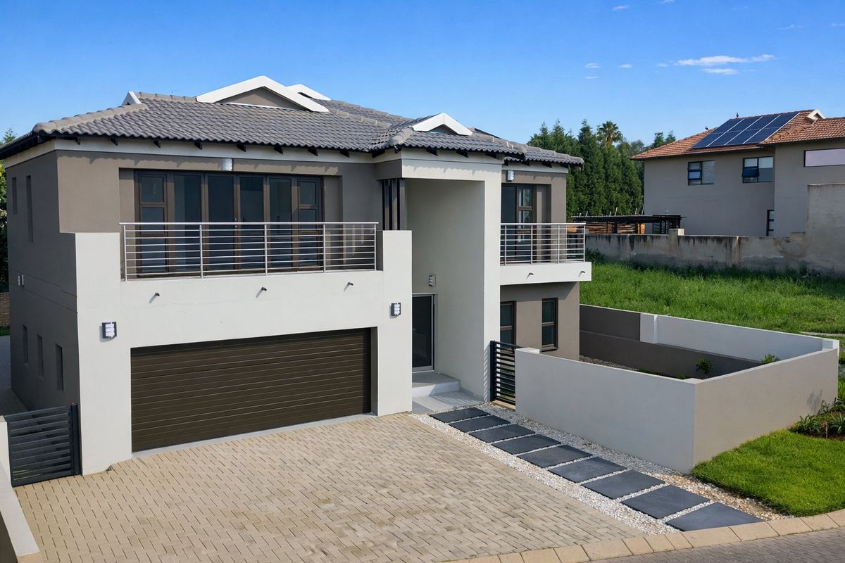 This newly built, digitally staged modern home in the sought-after Ruimsig Country Estate offers refined living with generous proportions and elegant finishes throughout. A welcoming entrance hall leads into an open-plan living space featuring seamless, high-gloss tiling that flows consistently through the home.