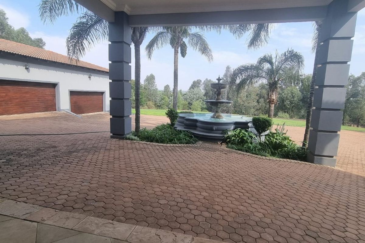 Entertainer's retreat on 2 hectares in Mogale, offering secure, tranquil living with pool and income-generating studio plus separate cottage wing; six bedrooms, seven bathrooms, seven garages.