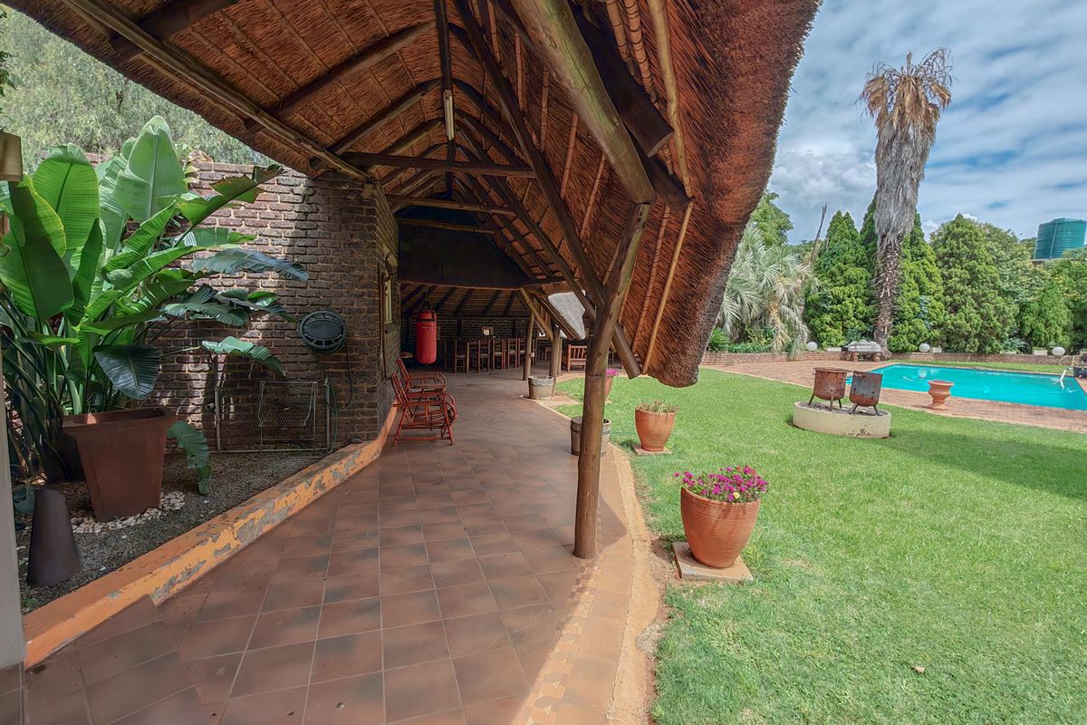 Country-living entertainer's retreat on 2.4 hectares near shops and schools, featuring a 70sqm lapa overlooking pool and jacuzzi — five beds, four baths, three garages.