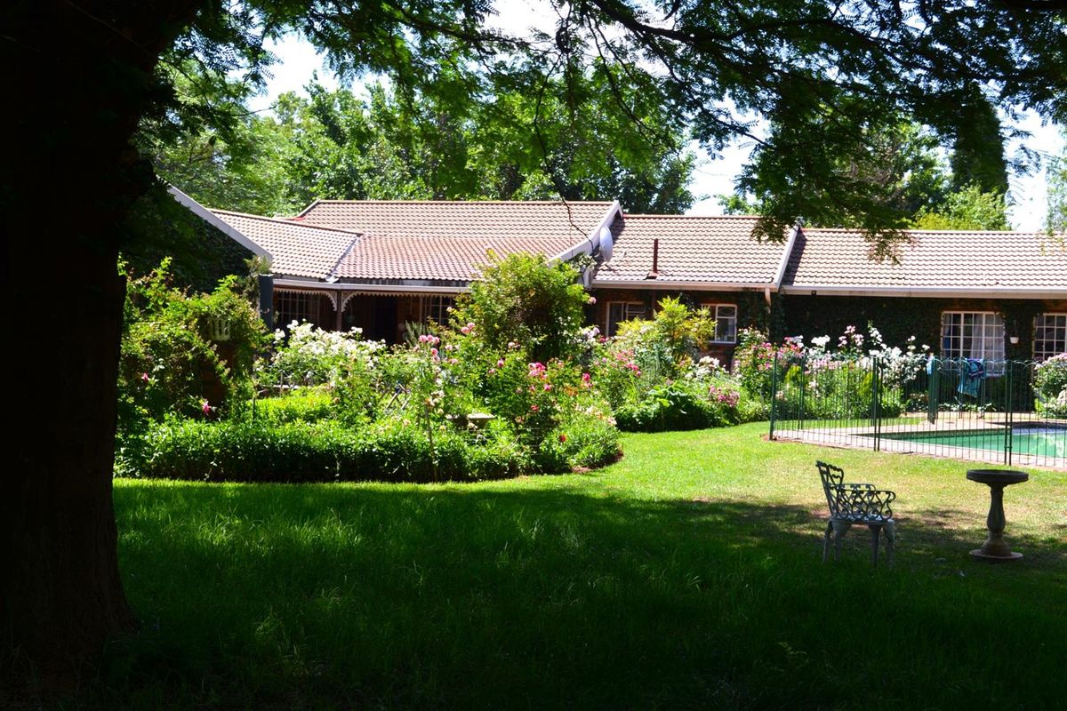 The swimming pool and thatched lapa are fenced in and surrounded by rose and complimentary foliage spoiling the homeowner with eye-candy while enjoying the local bird and animal activities. Overlooking the magnificent home, cottage, stables and entertainment area is a very neatly paved patio braai area.