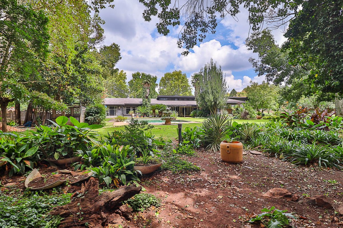 Urban living and income potential in central Meyerton on a double corner main road; features established fruit-tree garden and pool, five bedrooms, three baths, four covered parking.