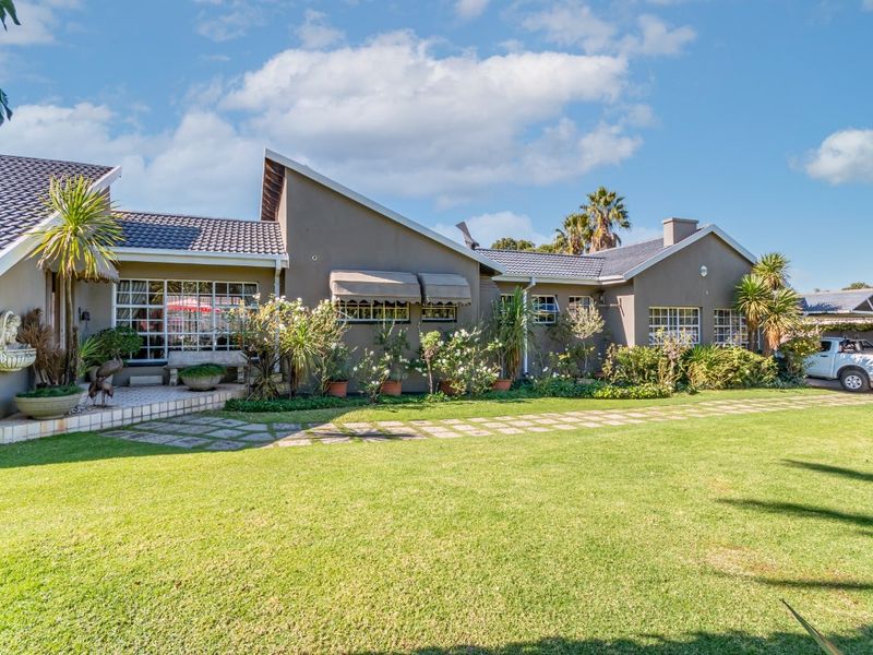 Entertainer's country estate near Meyerton with indoor-outdoor living, lush gardens, pool and gazebo, plus an on-site coffee shop for events — six bedrooms, four bathrooms.