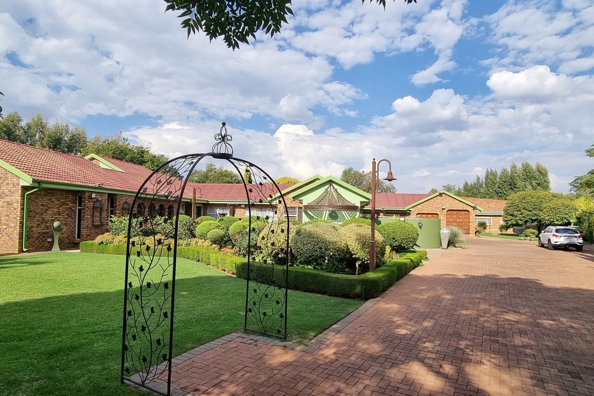 Entertainer's country estate near Meyerton with indoor-outdoor living, lush gardens, pool and gazebo, plus an on-site coffee shop for events — six bedrooms, four bathrooms.