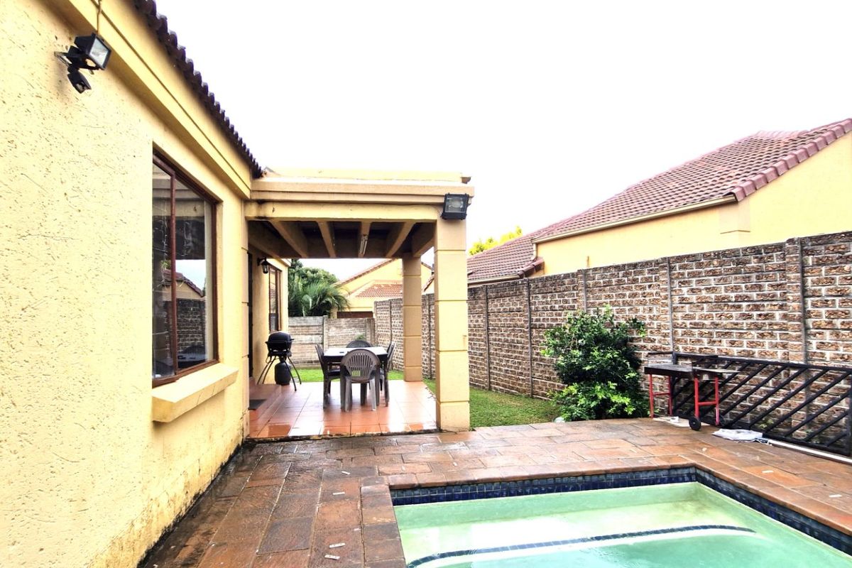 Relaxed estate living with easy access to Kyalami, Sunninghill and shopping; private pool, three bedrooms, two bathrooms and a double garage.