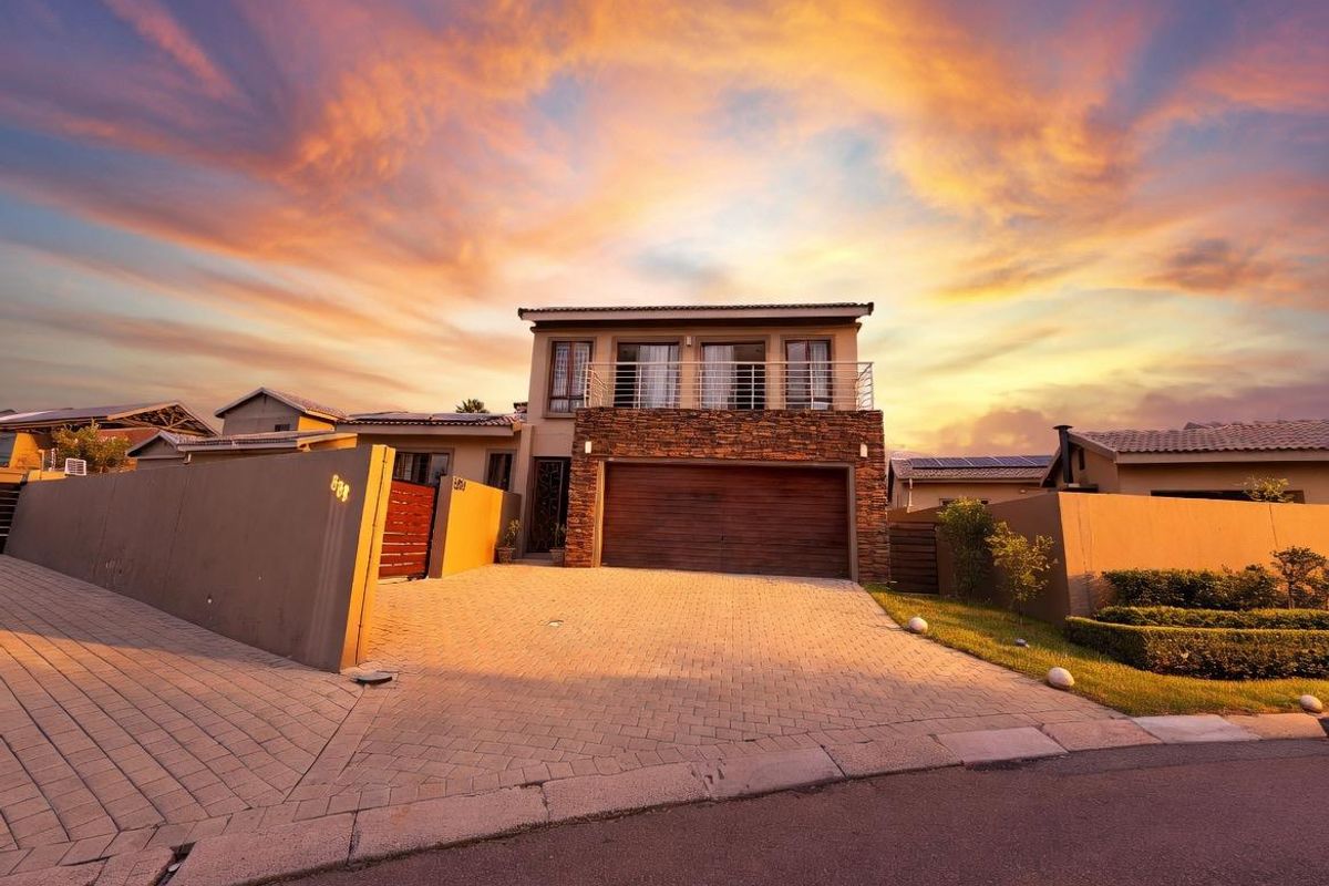 Family-focused entertainer in Woodlands Estate, Barbeque Downs — open-plan living flows to a patio with built-in braai and heated pool. Five bedrooms, three bathrooms, double garage.