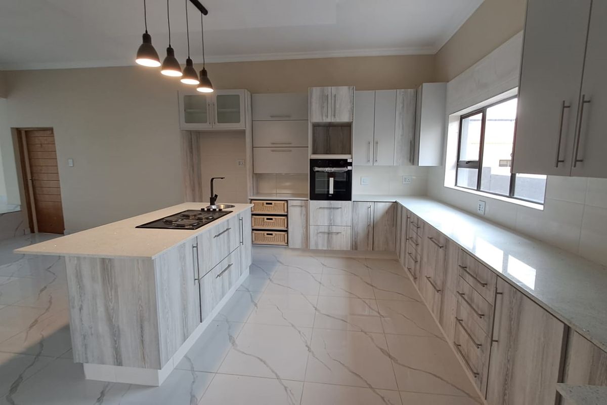 This house boasts 4 spacious bedrooms which are all en-suite. The main bedroom is the star of the show, with an extravagant balcony that overlooks the neighborhood. The main bedroom and 2 rooms are upstairs with the pyjama room the cherry on top, the fourth bedroom is nestled downstairs with its own patio. The spacious and modern kitchen flows from the dining room to the TV room. Outside is the staff quarters, give me a call and come and explore this masterpiece waiting to host your family.