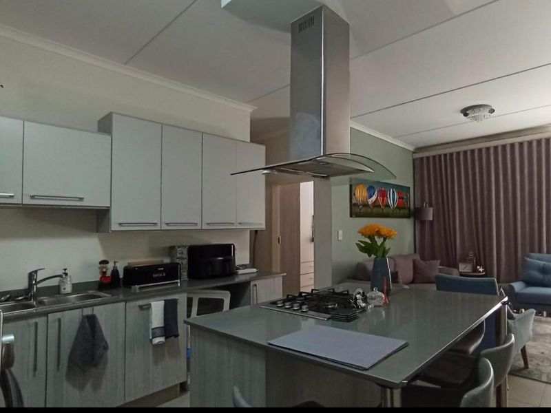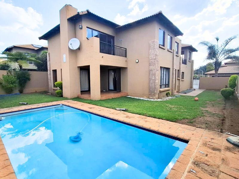 Relax in effortless modern living in Hill of Good Hope Estate, Midrand — leafy, secure location near Mall of Africa and Gautrain. Features private garden, three beds, 2.5 baths, double garage.