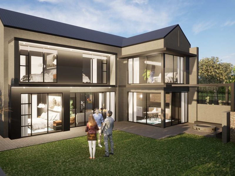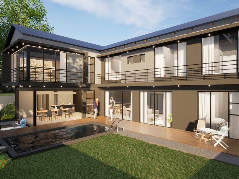 Entertainer's dream in secure Helderfontein Estate with pool, firepit and garden, seamless indoor–outdoor living, private main-suite balcony, plus five bedrooms, five bathrooms and double garage.