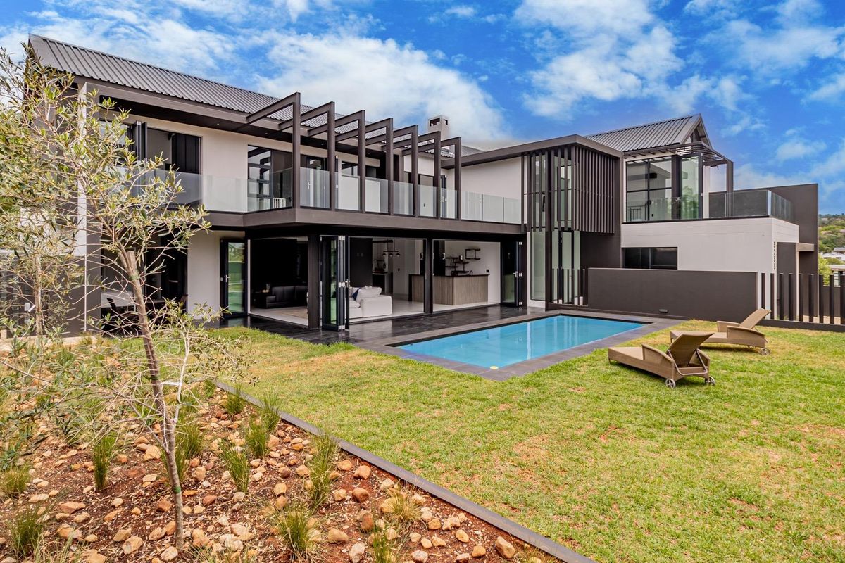 Effortless family living and entertaining in Helderfontein Residential Estate, featuring an entertainer's patio, sleek black-finish kitchen, five en-suite bedrooms and four garages.