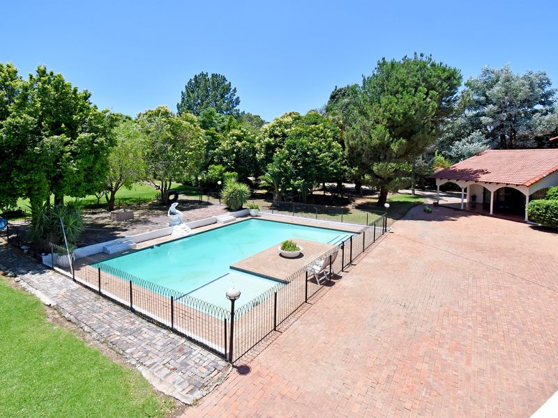Embrace country living on 2.3ha of treed acreage ideal for horses — add stables, plus a pool, borehole and repurposed double garage; three bedrooms, three bathrooms.