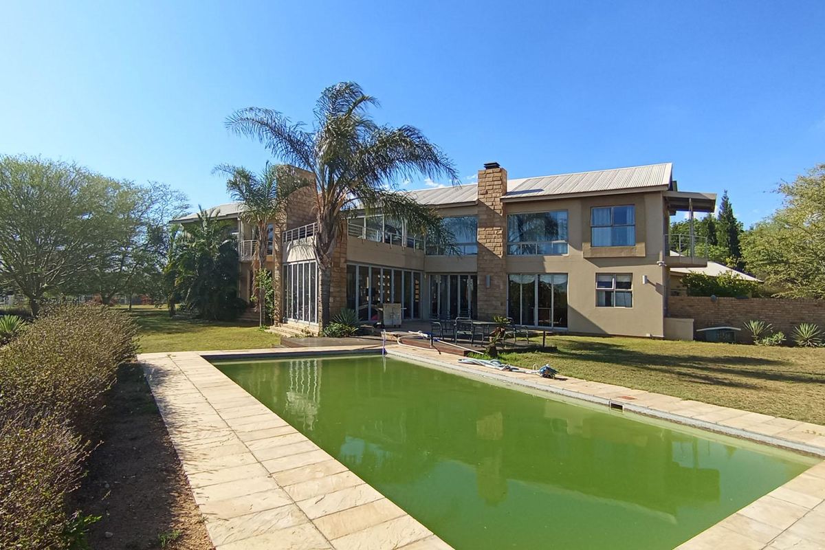 Entertainer’s retreat in serene Saddlebrooke Estate: double‑volume foyer, gourmet SMEG kitchen opening to heated pool, bar/braai patio and sweeping garden. Four bedrooms, four baths, triple garage.