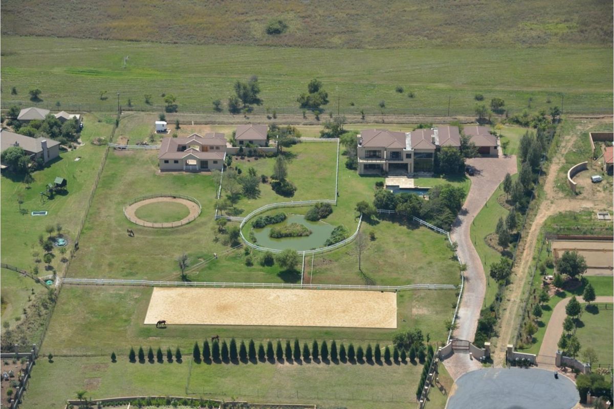 Effortless entertaining with panoramic Sandton skyline and Magaliesburg views in Saddlebrook cul-de-sac, featuring an enclosed entertainment area overlooking the pool, guest cottage, seven bedrooms and 4.5 baths.