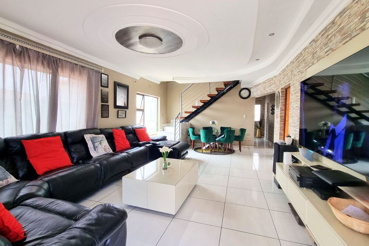 Family-focused living in secure Midrand, near schools, shops and highways. Entertainer's covered patio and modern kitchen; private children's play area with indoor soccer field. Four beds, two baths, double garage.