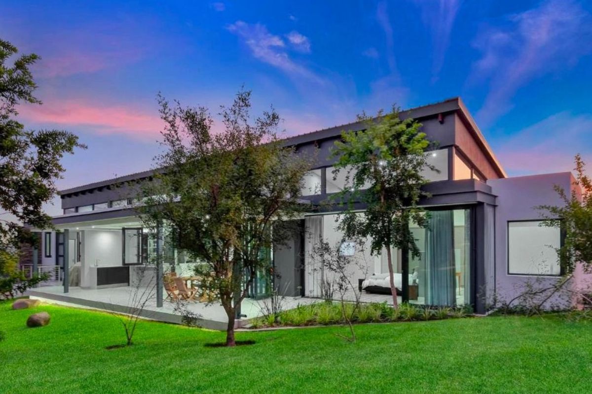 This luxury home features a unique northeast-facing aspect, offering views across a greenbelt and stream towards the city center. The house offers direct access to the Steyn City Mountain bike track and is just a short stroll from the city centre via a beautifully landscaped pathway. Designed around a central atrium, it features three en-suite bedrooms and an open-plan kitchen and dining area, with stacking doors that open onto a spacious, covered patio.