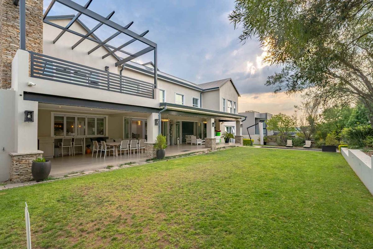 Resort-style Steyn City living with Nicklaus golf and parkland views; entertainer's flow to landscaped courtyard and private cinema — five en-suite bedrooms and six garages.