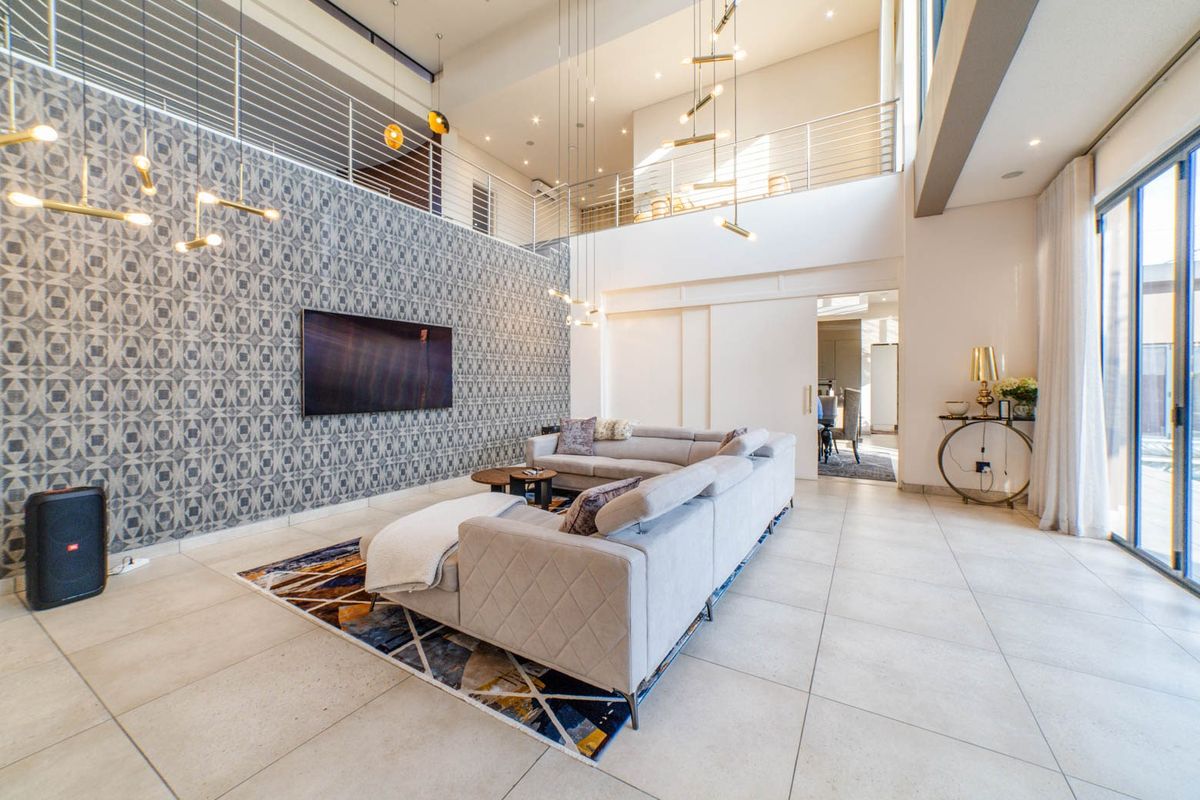 Resort-style living in Steyn City's secure estate, perfect for entertaining with an 11m swimming pool. Five en-suite bedrooms, five baths and four garages.