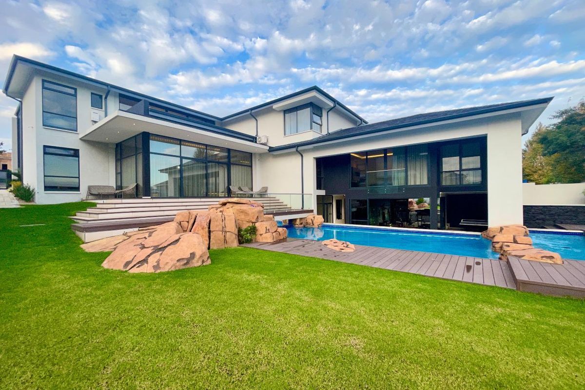 Modern stunner with city views, gym, cinema room and loads of space and top features. It is situated on a large stand and was completed in 2021. All the rooms are spacious and sunny and feature generous windows to showcase the views and cityscape. Chrystal chandeliers add panache and quality to the home. Separate massive room was dedicated for a cinema room, fit for at least 12 seater. The dining room is open plan to the modern kitchen and overlooks the formal lounge. A separate lounge area is tucked away and ideal for a kids play area or a lounge to the guest suite. Downstairs you also have a guest bedroom en suite with shower, a study and a guest toilet. the top floor offers a landing area with space for a reading corner, a cosy pyjama lounge, and 4 massive bedrooms, all en suite. The main bedroom is luxurious and showcases a jacuzzi bath and tinted cabinetry in the walk-in closet. The home has a 3rd level, in line with the swimming pool, offering a private gym, covered play room, laundry room, store-room can can double up as a craft room or 6th bedroom, and staff quarters. The whole house looks out onto the manicured garden with massive pool sized 6x10 m, and a 2x6 kids jacuzzi pool, set in a rock water feature. Central aircon, gas fireplace, separate cooker in the scullery, gas and electric stove, plasma TV, built-in fridge-freezer, imported italian cabinetry throughout, are several of the top features of this magnificent home.Â